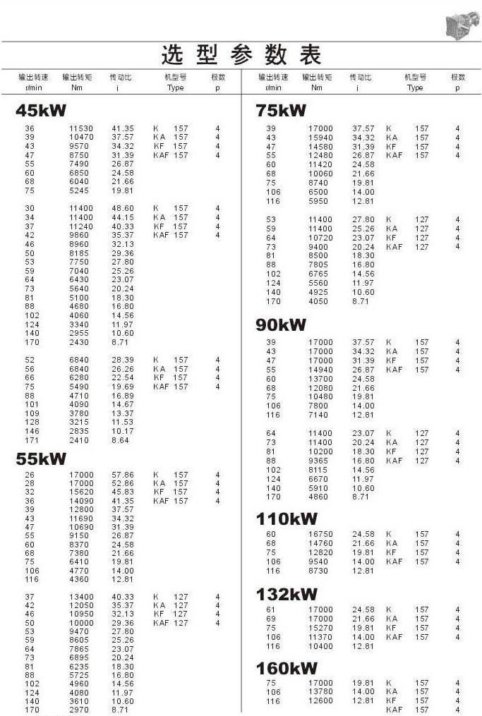 選型參數(shù)表45kW (續(xù)),55kW ,75kW ,90kW ,110kW ,132kW ,160kW