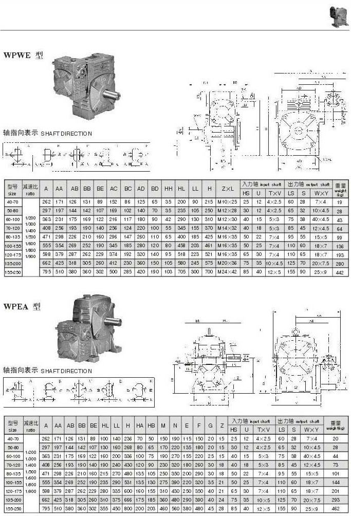 WPWE,WPEA型型號(hào)參數(shù)圖表